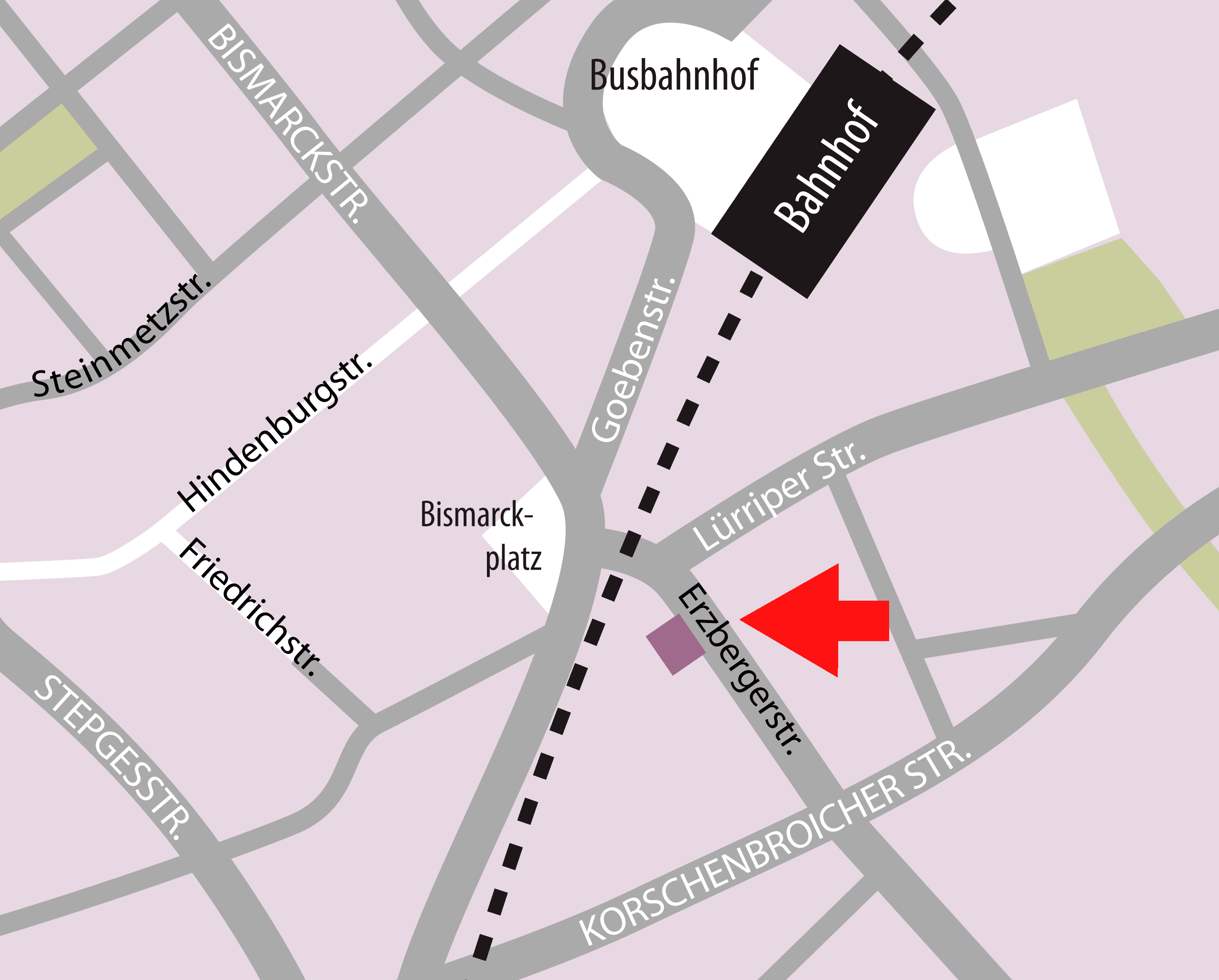 Das Bruno-Lelieveld-Haus kann mit sämtlichen Buslinien erreicht werden, die am Bismarckplatz sowie an der Haltestelle Erzbergerstraße halten.